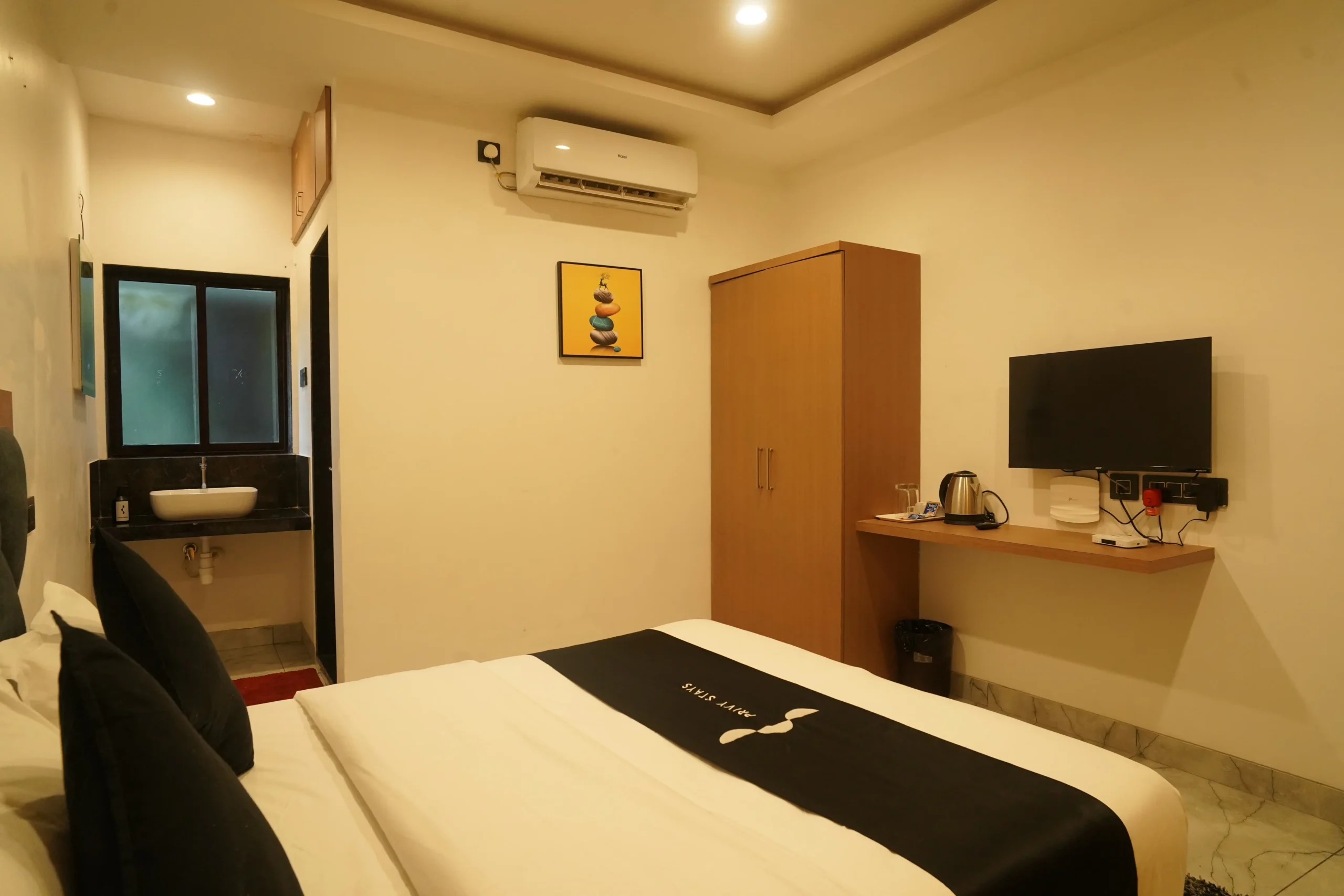 Our fully air-conditioned rooms are designed for relaxation and convenience. Whether you’re planning a romantic weekend getaway or a family vacation in Alibag, we have room options to suit every stay.