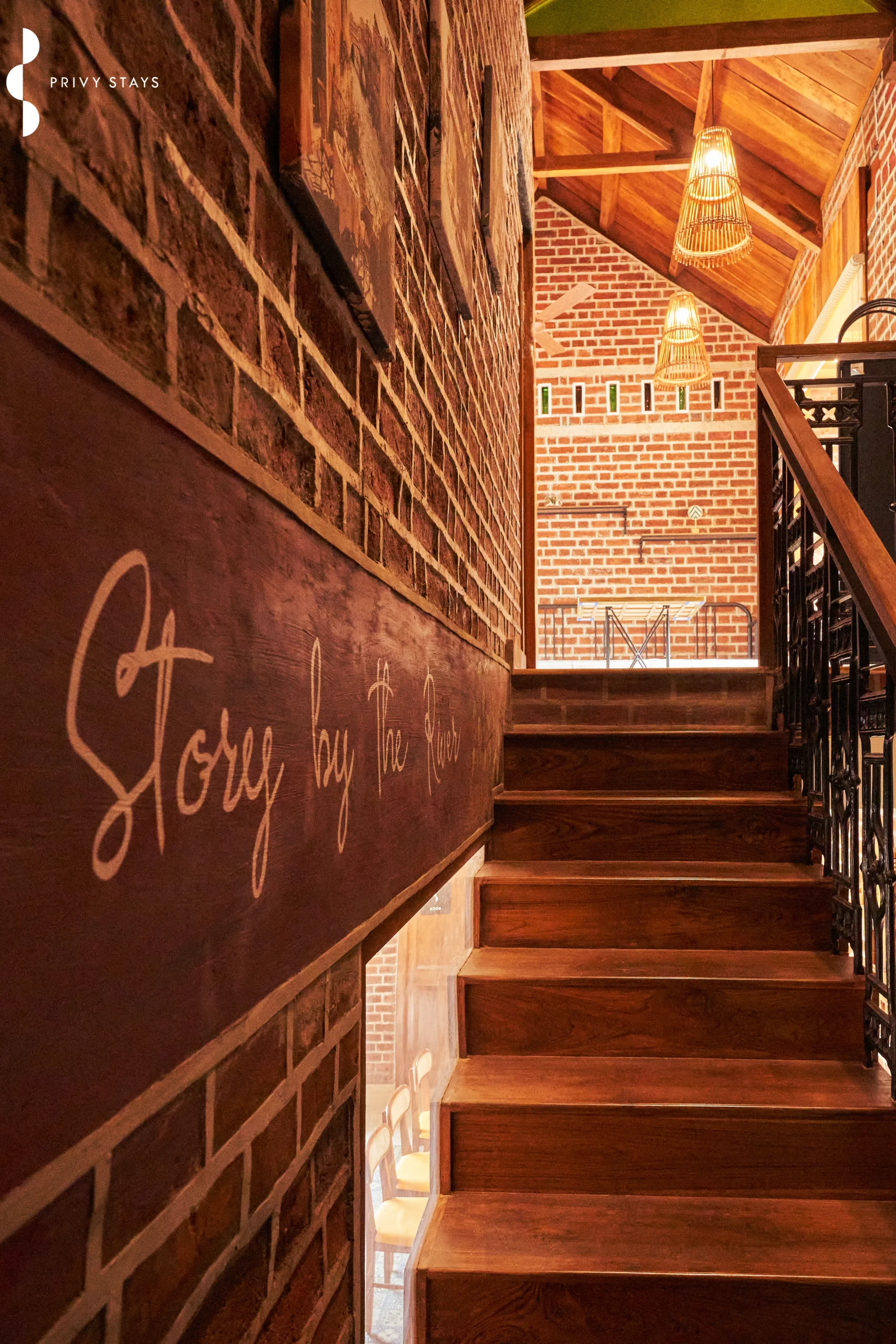 One of the most unique features of Story By The River is its authentic countryside charm. The rustic brick walls, wooden accents, and expansive windows create a space that feels grounded, warm, and inviting.